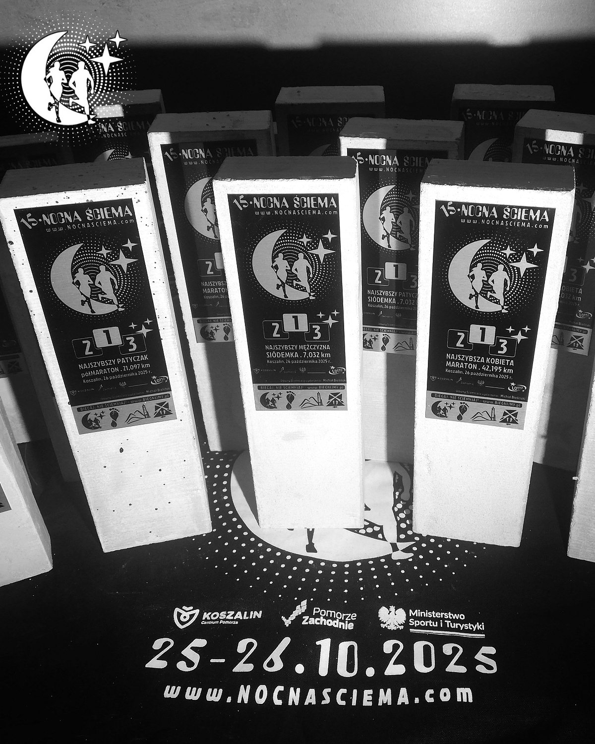 - osobom w kategoriach "WCZEŚNIAK Nocnej Ściemy" i "TURYSTA Nocnej Ściemy" (siódemka, półmaraton i maraton)